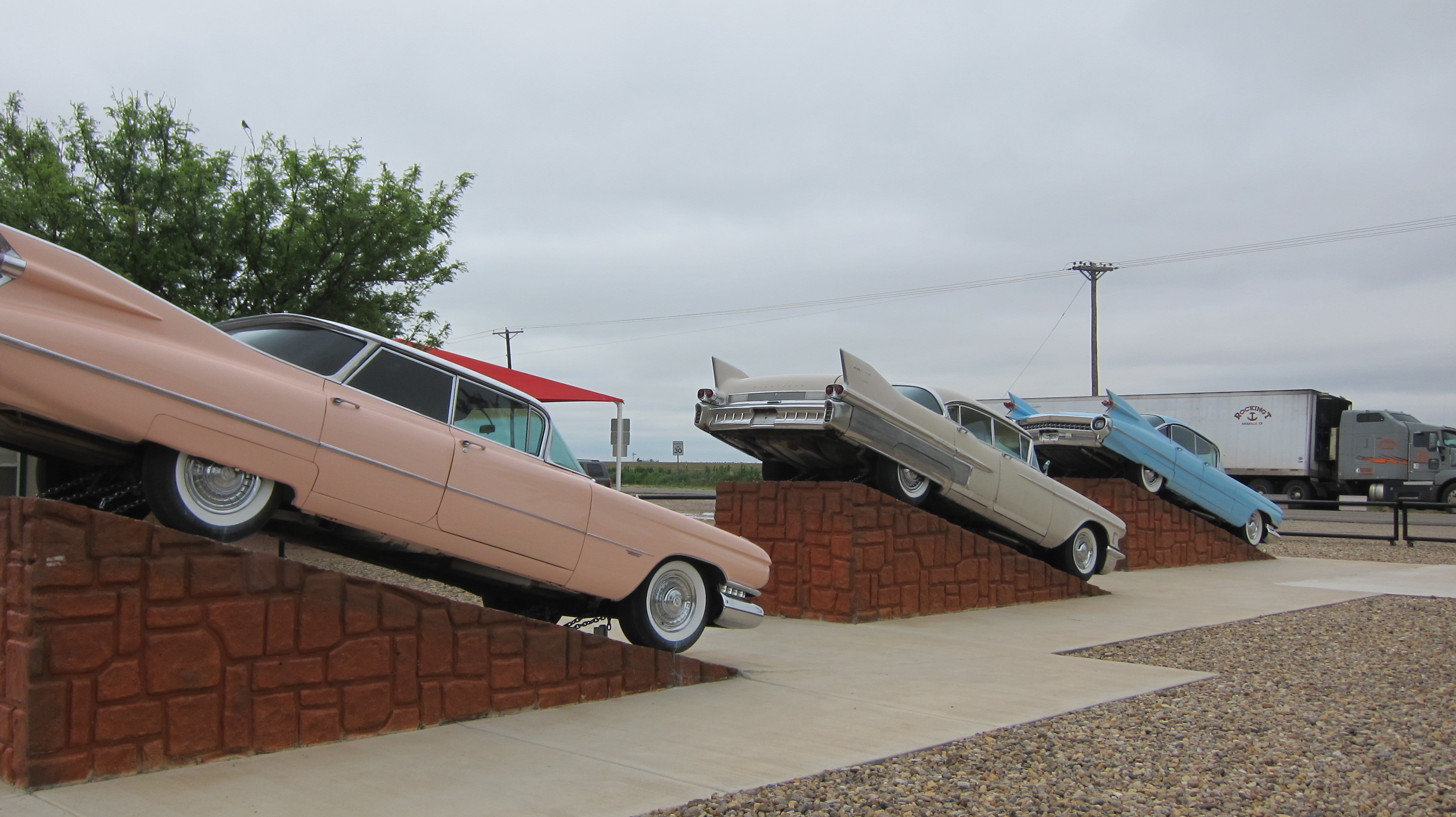 Cadillac Ranch – the cars are in a pretty big puddle after the horrendous rains in Texas in the past number of weeks.