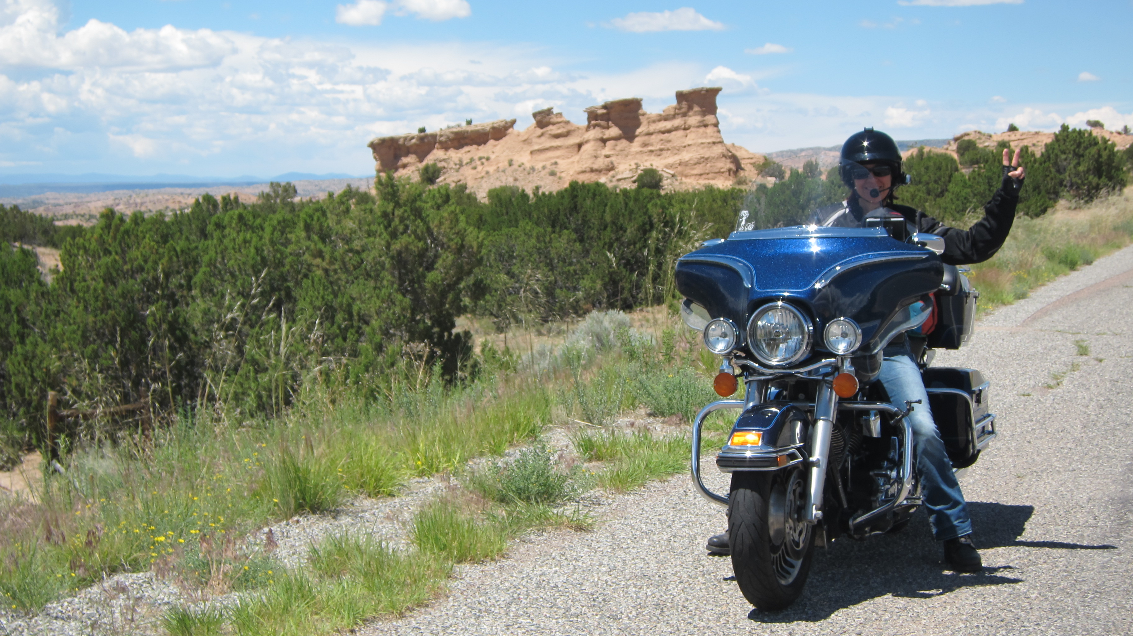 Breathtaking scenery on the way to Santa Fe, NMThere were numerous rock formations like this along the wayThere were also a lot of arid dessert like areas along the wayThe roadways swept through the mountains and hillsides making for some very nice riding!