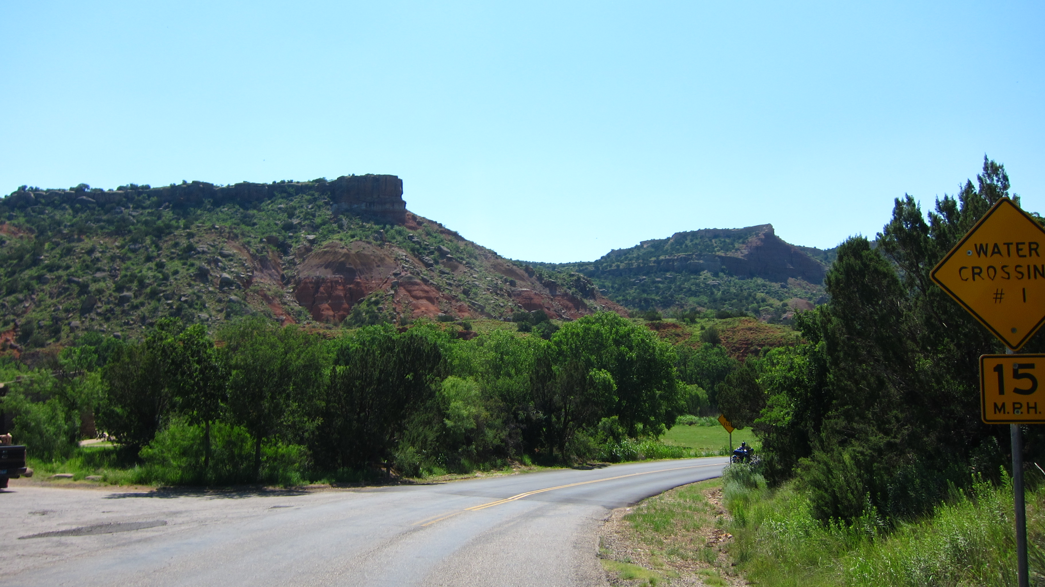 Riding through Texas has brought so many amazing experiences and riding into Palo Duro Canyon was one of them. The magnificence of the Canyon was far more than I had anticipated. From the research I did when planning my trip I knew it was referred to as the Little Grand Canyon. What I wasn’t aware of was that I would be able to ride down into the base of the canyon on my motorcycle. Doing so was nothing short of spectacular!