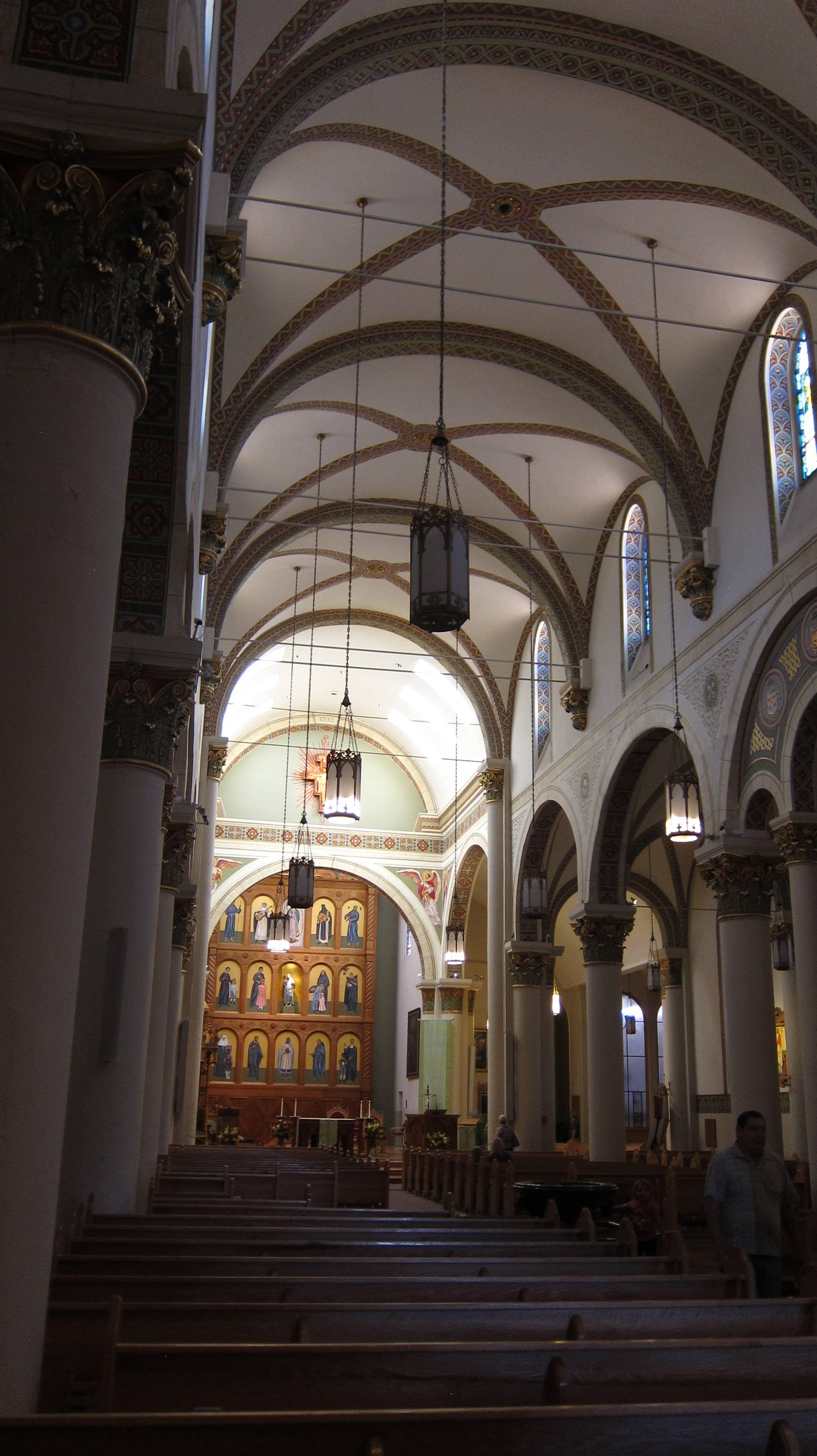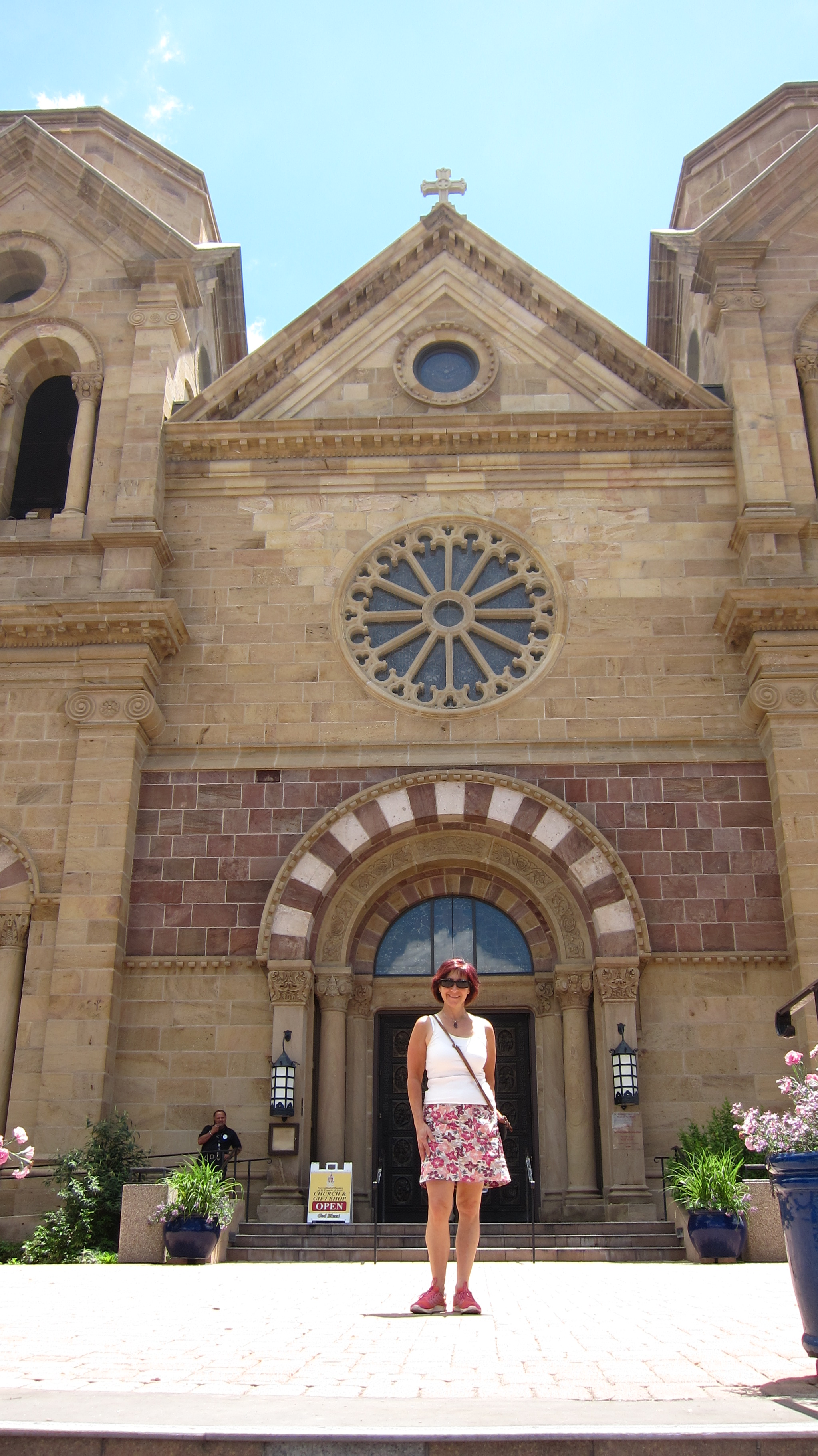 My visit also included the famous Loretta Chapel which was constructed in the 1870’s. The chapel resembles the Sainte-Chapelle in Paris but it is on a smaller scale. Before the chapel was completed, the architect died suddenly leaving the builders to realize it lacked a stairway to the choir loft. Due to the chapel’s small size, a standard staircase would have been too large. The story is that a shabby looking carpenter appeared at the chapel and offered to build a staircase. He used a small number of primitive tools including a square, a saw and some warm water and constructed a spiral staircase. The identity of the carpenter is not known. When the staircase was finished three months later the carpenter was gone. The spiral staircase is twenty feet high and has two complete revolutions up to the choir loft. There are no nails or apparent center support. It is an incredible piece of mastery!