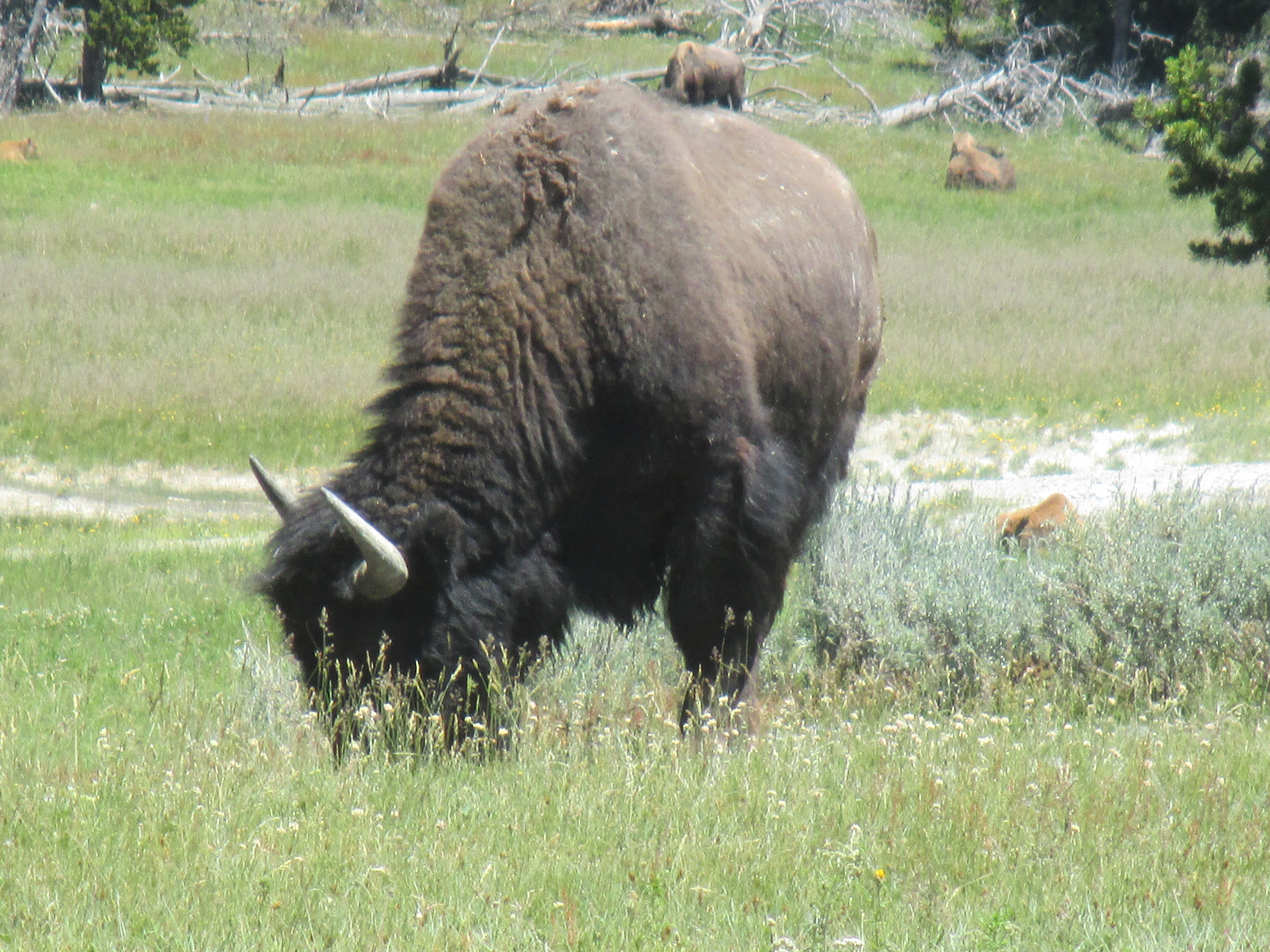A big bison in Yellowstone Park.I hope they aren’t coming this way!Buffalo Gold!The impact of the forest fire that devastated Yellowstone Park in 1988 can still be seen today. Please be careful in the forests!Yellowstone Lake is that largest natural lake at high elevation in North America at more than 7000 feet and is about 20 miles long and 14 miles wide!