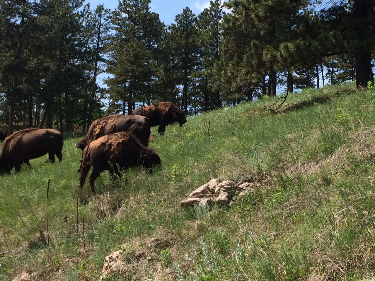 Part of the herd of buffalo I came across just outside of Custer”s ParkThis is mom with her young one