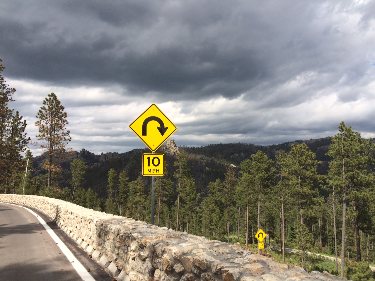 When I made my way to South Dakota I was “wowed” by what I found. The Black Hills offered some of the best motorcycling roads that I’ve come across and the roads through the parks, such as Custer State Park were out of this world! One of the roads in particular, Needles Eye, was engineered using “pigtail” turns. When you see a sign like this you know you’re in for some mean twists!