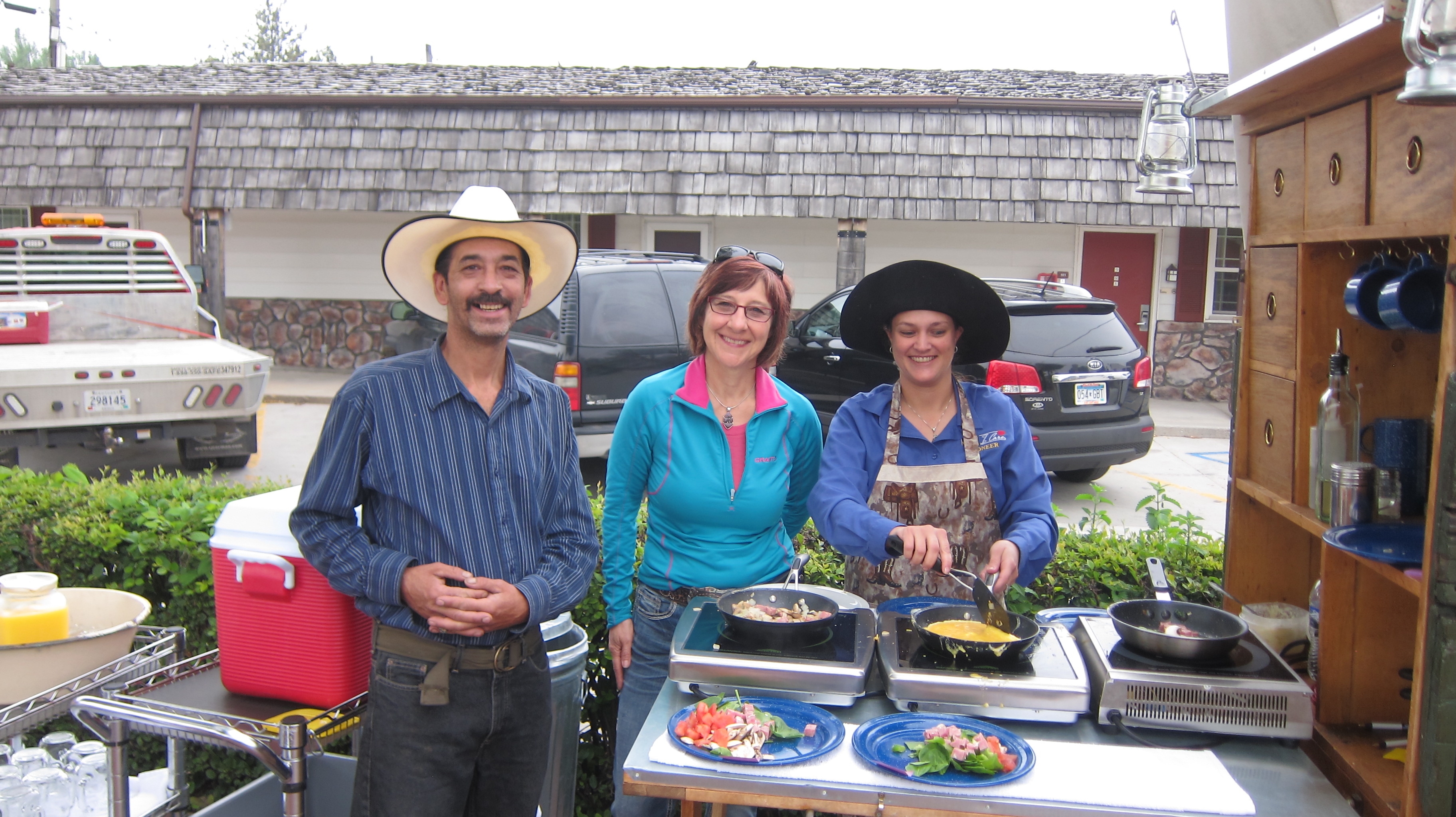 Fresh made to order omelettes being whipped up by the hotel staff at the Best Western in Lusk, WyomingMorning coffee in a “cowboy cup”