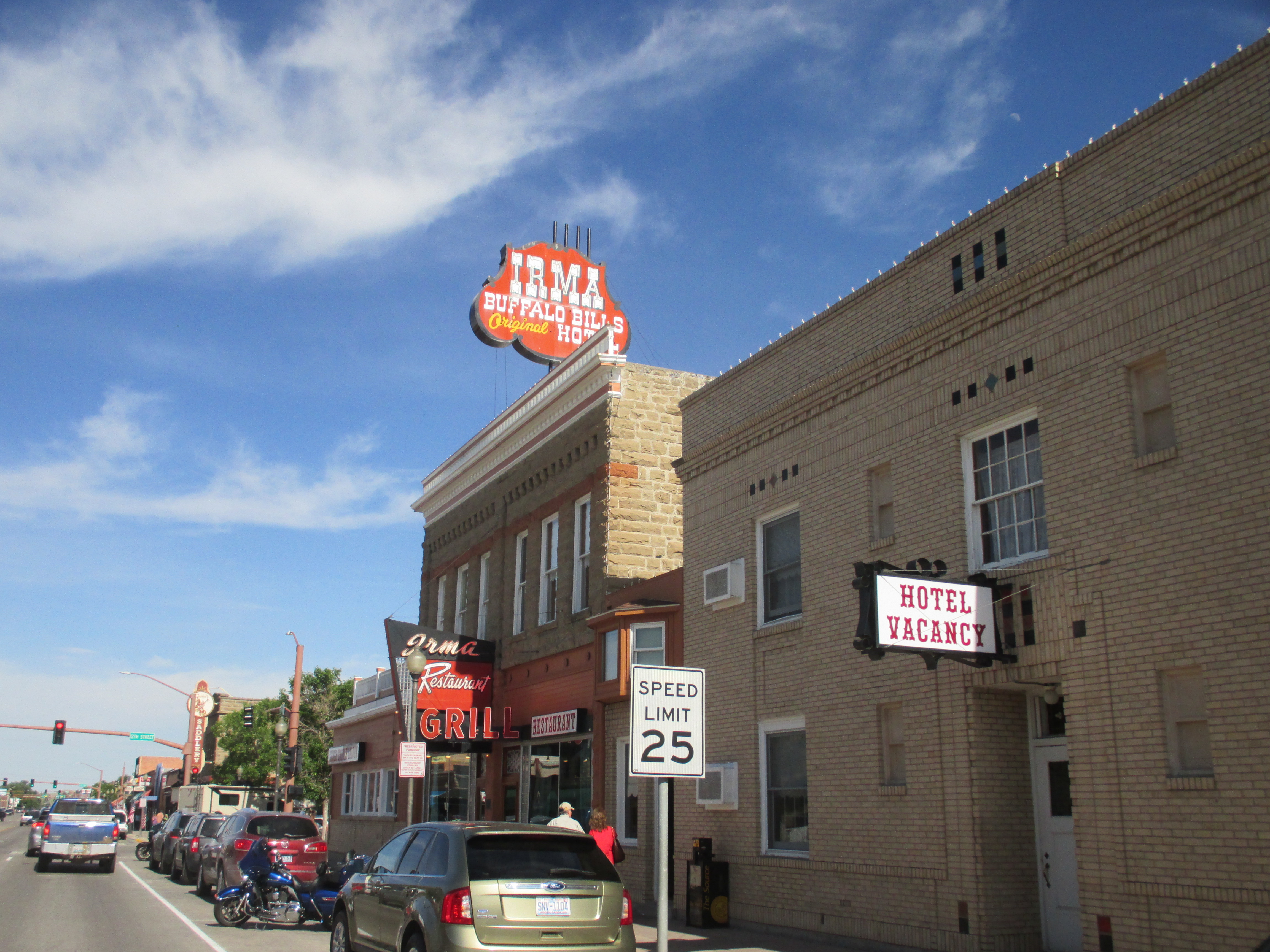 Downtown Cody, WyomingThe famous Irma Hotel…where the evening gun fight is held and everyone is guaranteed a good time…yee haw!Local art workBeen there…done that 🙂